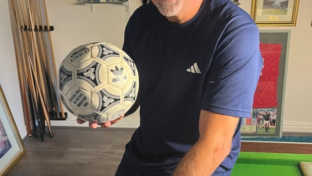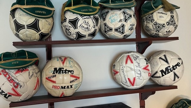 Unterschriebene Matchbälle seiner Hattricks, Trikots und der Goldene Schuh als Torschützenkönig auf der Insel. John Aldridge, der mit 330 Treffern im englischen Profi-Fußball zu den erfolgreichsten Stürmern zählt, lud die „Krone“ zum Nostalgie-Talk in sein privates Museum in der Nähe der Anfield Road – und übergab als Gastgeschenk sein WM-Trikot von 1994. Zweimal erlebte der 67-Jährige mit Irland eine Endrunde.